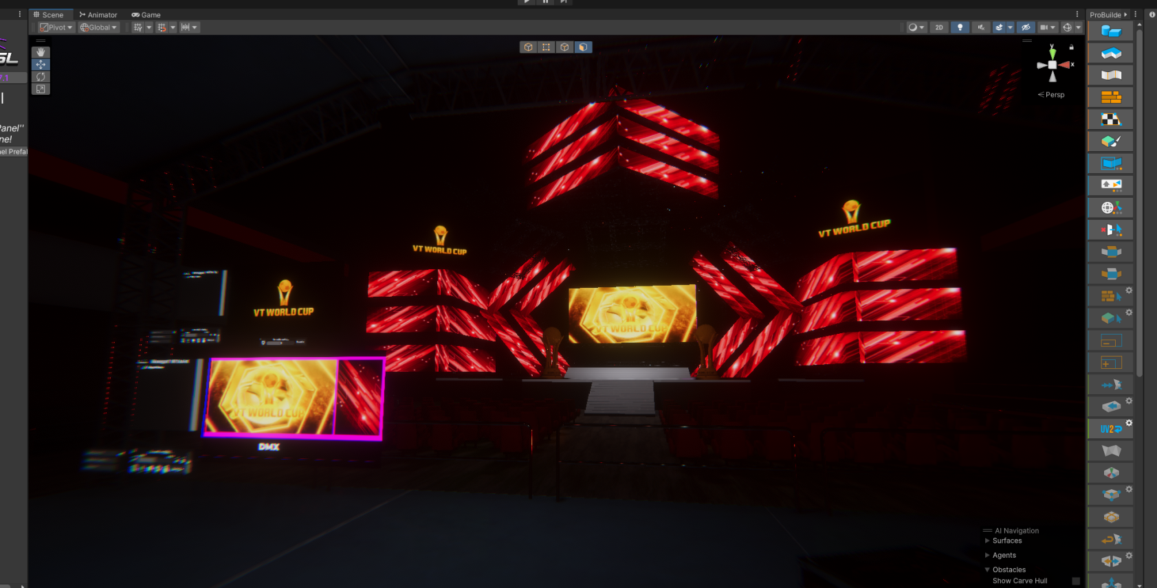 En cuanto al funcionamiento principal, se programó todo usando Excel y una botonera de SAMMI con la cual podíamos posicionar los países en el bracket que escogieran a tiempo real, además de transmitir la música y videos al mundo 3D.